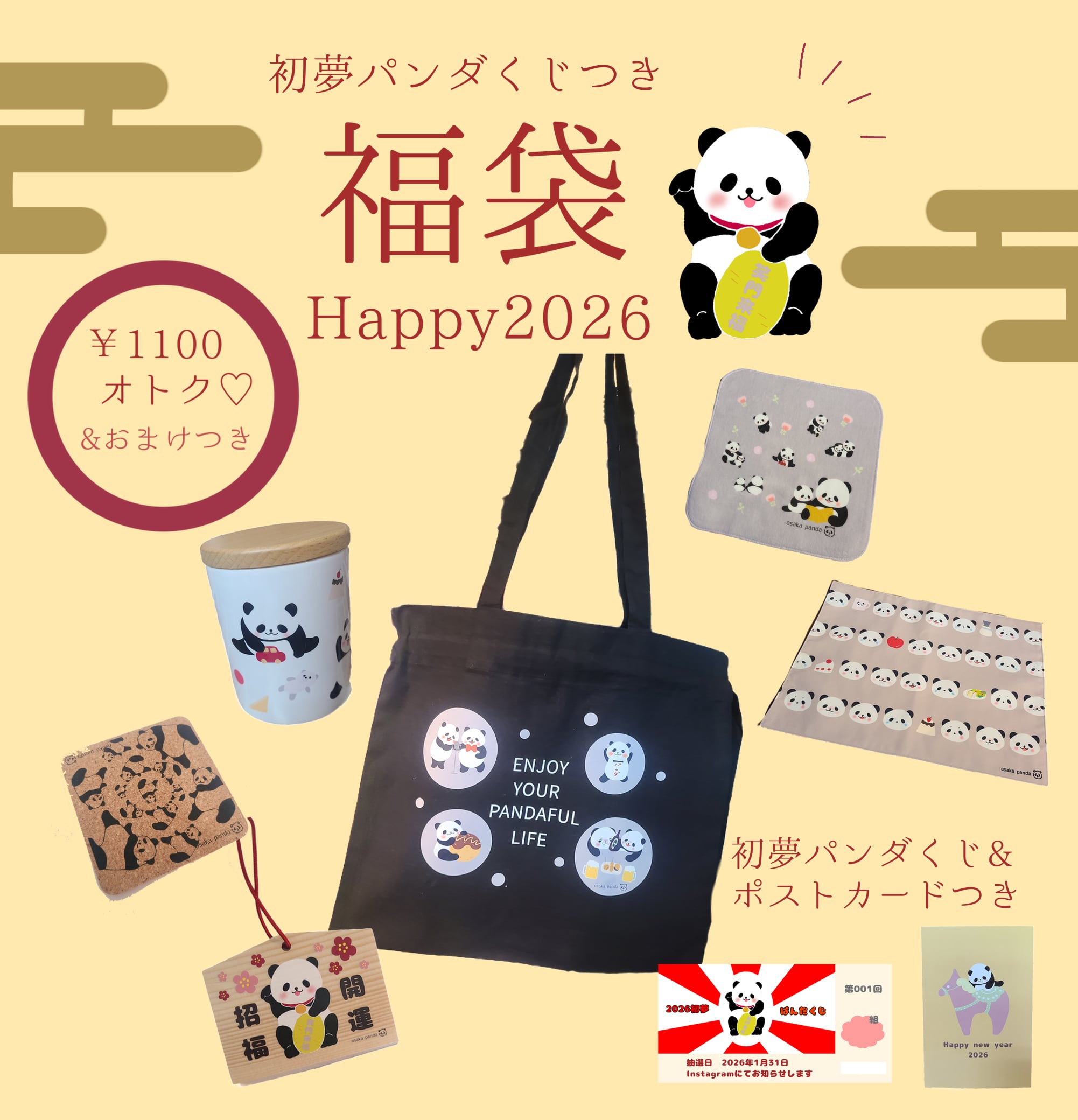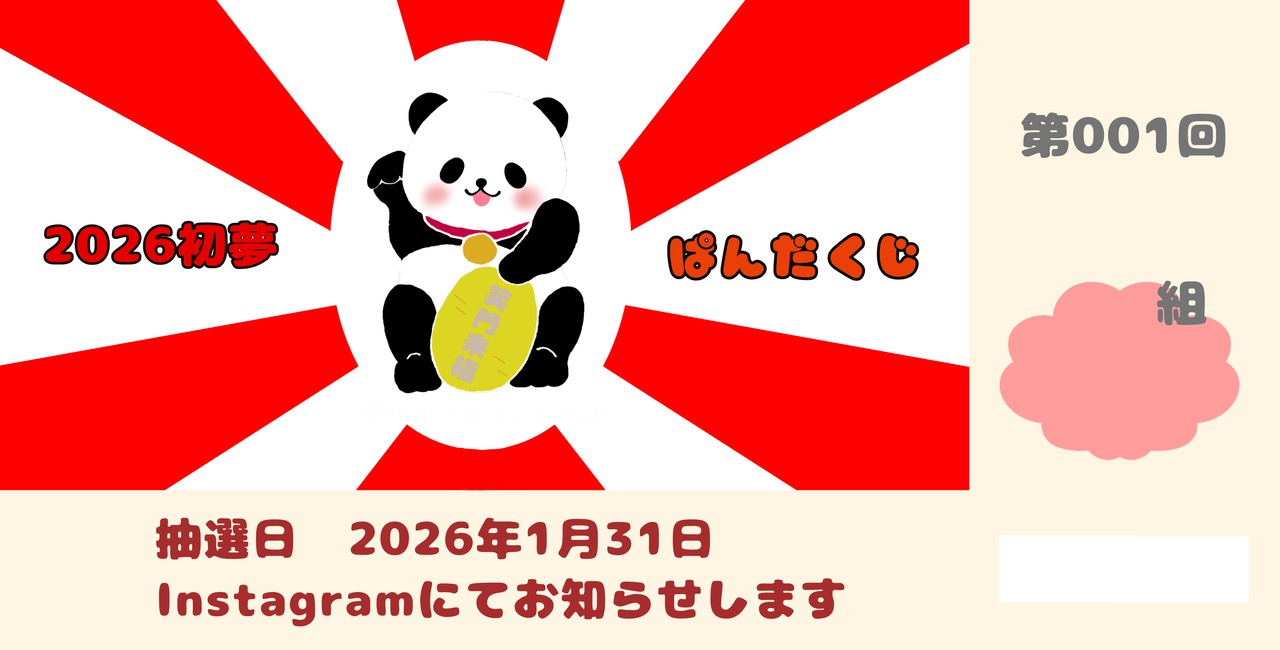 初夢★パンダくじ♪(1月31日にInstagramにて当選番号を発表いたします。1名さまにパンダグッズが当たります!)